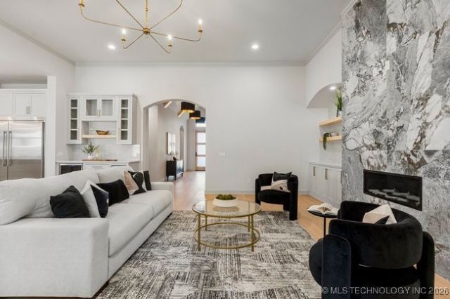 This floor plan will make the perfect home for buyers! Beautiful and quality construction! 3 bedrooms, 2 full and one 1/2 bathroom. Two car garage. Open floor plan, living room with fireplace open to kitchen and large island. Built in coffee/bar area with mini fridge. This home features a beautiful extra living space (four season room) with stunning fireplace and built in cabinets/shelves. Master bathroom adorns a beautiful barrel ceiling and arched openings. The two bedrooms on opposite side of the house share a beautifully designed pullman bathroom, one of these rooms could also serve as a flex room/study. Large dining room with beautiful views of the back yard. Great windows! Wonderful extended patio on the back yard. Great appliance package! Laundry/mud room are an exceptional space in this home! Great Storage! GATED COMMUNITY! Award winning Jenks Southeast Elementary School. BONUS room unfinished staircase in garage that leads to a large unfinished area upstairs, could be finished for another living space, recording studio, office, workout etc. This space in entered through garage so would be very private. Agent is related to seller. New PUBLIC REMARKS! Enjoy added purchasing power! SELLER is offering up to $10,000.00 toward buyer closing costs or allowable concessions with an acceptable offer-creating an excellent opportunity to lower-creating an excellent opportunity to lower-creating excellent opportunity to lower your cash to close or enhance your financing strategy.