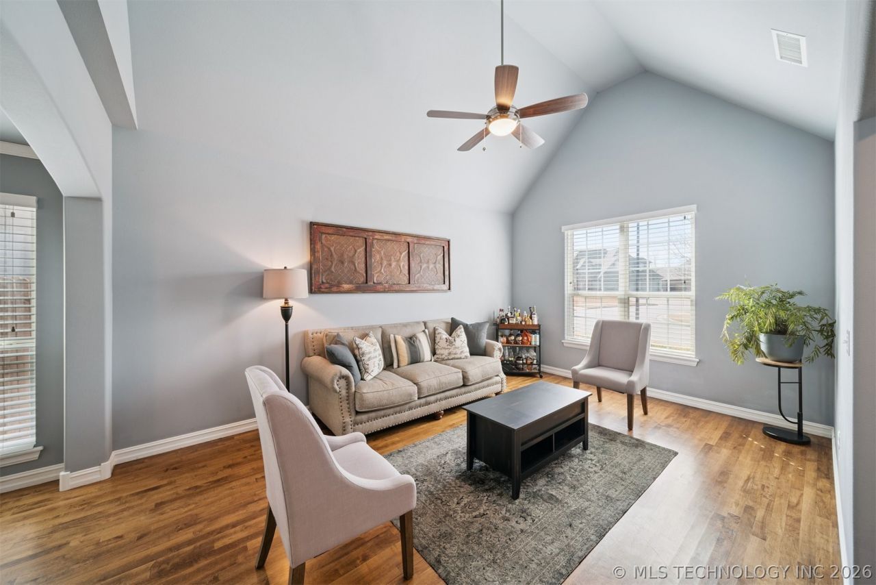 This thoughtfully designed 4 bedroom, 3.5 bath home offers the space, functionality, and outdoor lifestyle today's families love, all in a desirable Jenks location! A flexible floor plan includes a downstairs guest bedroom with private bath, ideal for visitors or multigenerational living. The oversized primary suite is a true retreat, featuring a spacious bedroom, large bathroom, and an extra-large laundry room conveniently connected to the primary closet. Upstairs, a generous game room provides the perfect spot for kids, movie nights or a second living area, while ample storage throughout the house keeps everything organized! Step outside to a backyard made for memories, compete with a beautiful pool and pergola - perfect for outdoor entertaining, summer fun, and relaxing evenings with family and friends! Conveniently located near top schools, shopping, and dining, this home blends comfort, space, and an inviting outdoor lifestyle!